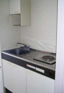 お部屋は1Rタイプで、風呂・トイレ・エアコン・キッチン完備。